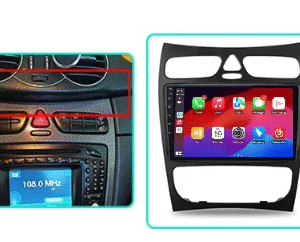 - 📱 Ajoutez un écran tactile à votre véhicule et retrouvez toutes les fonctionnalités de votre téléphone.✅ Poste CarPlay pour Mercedes Classe C et CLK (2000 à 2005) – façade noire avec haut de façade arrondi au niveau des aérations.⚠️ Merci de bien vérifier les photos : si le haut de votre façade est plat, choisissez l’autre version.