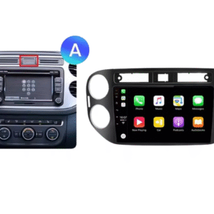 - 📱 Ajoutez un écran tactile à votre véhicule et retrouvez toutes les fonctionnalités de votre téléphone.✅ Poste CarPlay pour Volkswagen Tiguan (2006 à 2016) – version grise avec grande façade intégrant les aérations rondes et l’adaptation fournie pour les deux types de bouton Warning (carré ou triangulaire).