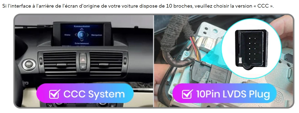 - 🔊 Si votre véhicule est équipé d’un système audio fibre optique, Bose, JBL… ou d’un GPS d’origine, un adaptateur peut être nécessaire.