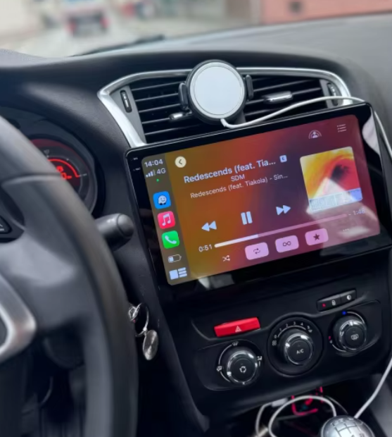 Offrez un vrai coup de jeune à votre Citroën C4 avec ce système CarPlay moderne. Il remplace le poste d’origine en conservant l’ergonomie du tableau de bord, avec une façade fournie qui s’adapte parfaitement à la version équipée de boutons ronds situés sous l’écran.