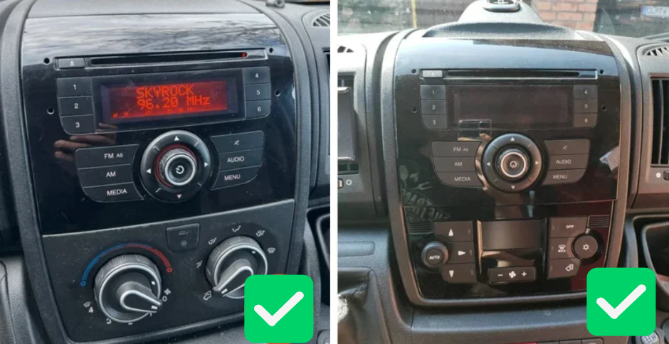 Ce modèle est spécialement conçu pour remplacer le poste d’origine avec la console arrondie (gros boutons en façade), pour une intégration parfaite dans le tableau de bord.