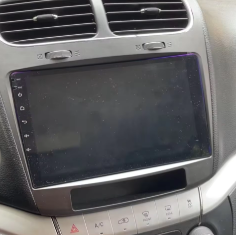 Modernisez votre Fiat Freemont avec un grand écran tactile tout-en-un. Ce modèle s’installe à la place du poste d’origine, avec une façade qui regroupe parfaitement les aérations au-dessus de l’écran pour une intégration parfaite et moderne.