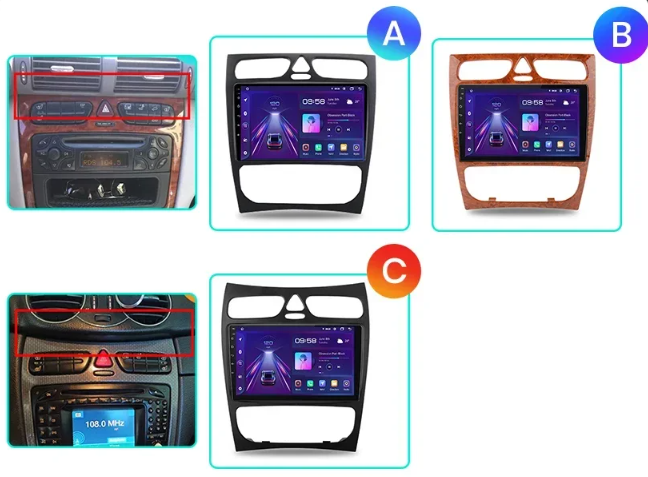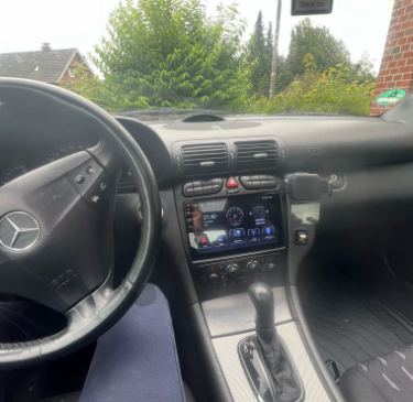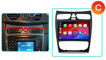 carplay mercedes classe c clk w203 w209 s203 a209 2000 2001 2002 2003 2004 2005, poste android façade noire arrondie mercedes, autoradio bluetooth clk w209 2004, écran tactile façade haute arrondie mercedes, retrofit tableau bord clk 2005, façade courbe mercedes classe c w203