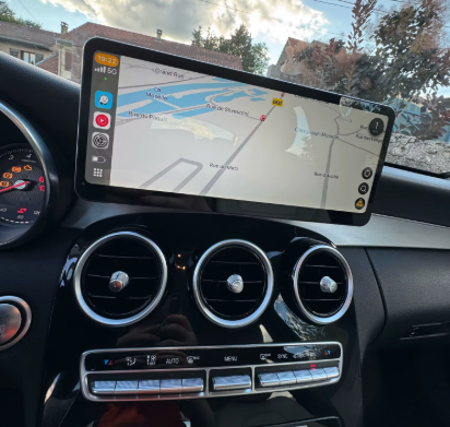 Ce modèle reprend le design des écrans d’origine Mercedes tout en ajoutant la compatibilité Apple CarPlay & Android Auto. L’écran s’intègre proprement à l’intérieur de votre véhicule sans modification, et transforme l’expérience de conduite.