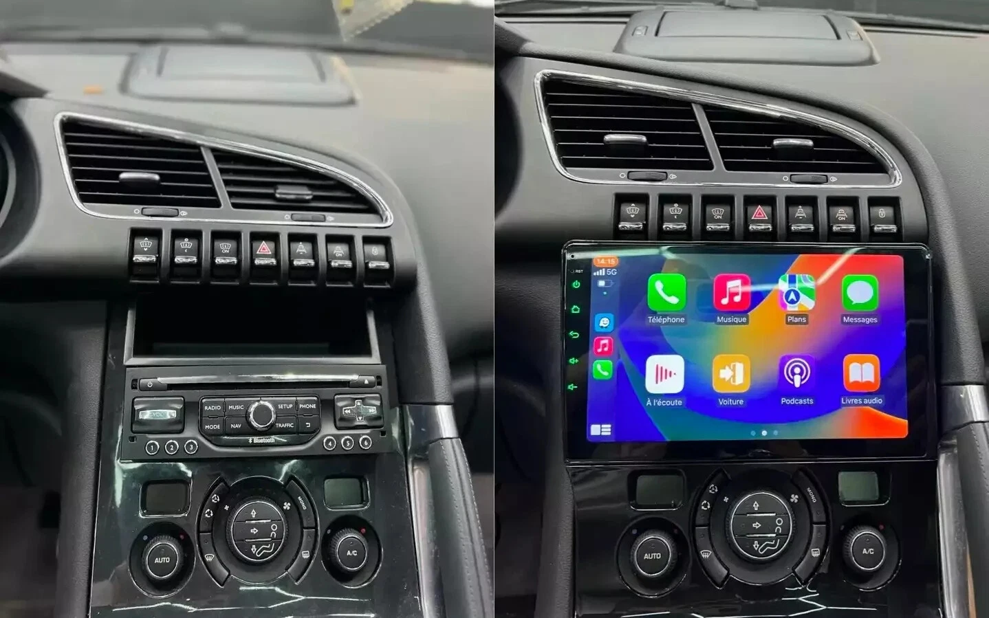 ✅ Poste CarPlay pour Peugeot 3008 (2009 à 2016) avec façade fournie parfaitement intégrée, compatible uniquement avec la version climatisation manuelle (bouton chauffage et clim intégrés sous l’écran).